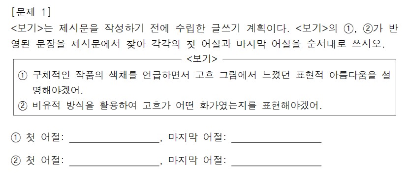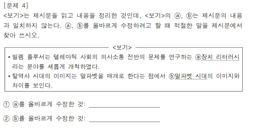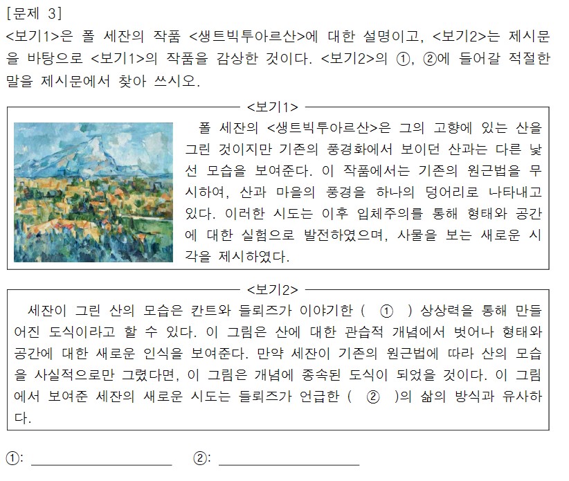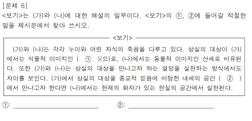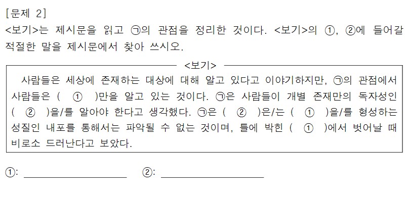 - 문제 유형 : 제시문에서 찾아 쓰기, 제시문 읽고 <보기>의 빈칸에 들어갈 말 쓰기 등