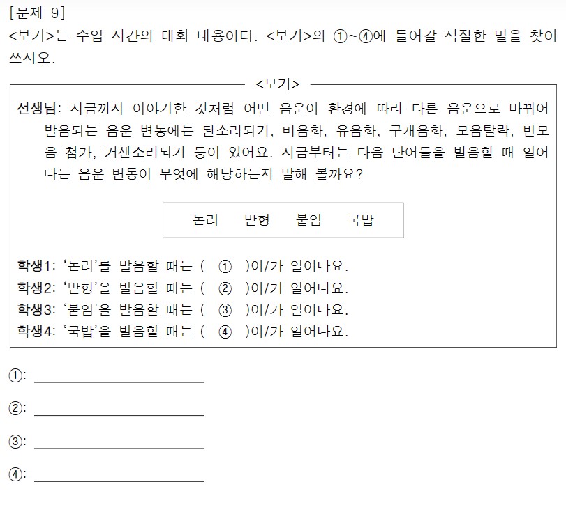 - 국어의 경우 총 9문제 정도가 출제됨.