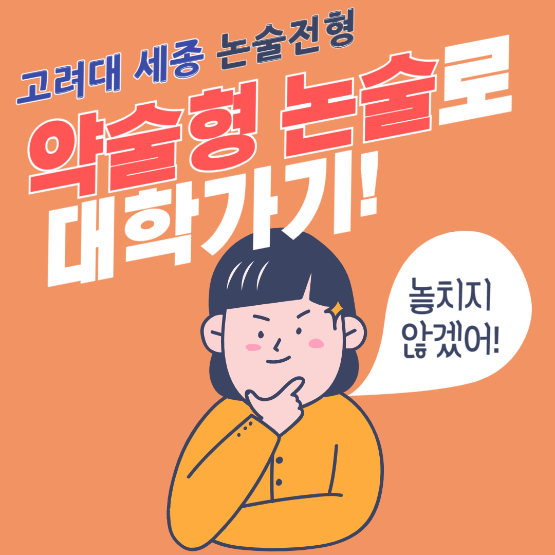 수능 '국어'가 자신있는 학생이고, 내신이 4등급이후라면 고려대학교 세종캠퍼스 논술 전형을 노릴만하다고 할 수 있습니다.