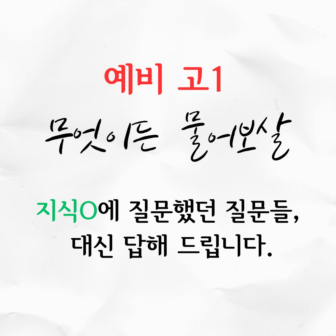 이번 포스팅은 지식O을 참고하여, 예비 고1 (지금 중학교 3학년 졸업을 앞 두고 있거나 졸업을 할) 학생들이 가장 궁금해 하는 것들에 대한 답변 포스팅을 해 보려고 합니다. 제 답변은 말 그대로 경험을 바탕으로 한 주관적인 답변이니 참고만 하기 바라지만, 그래도 도움이 많이 되기 바랍니다.