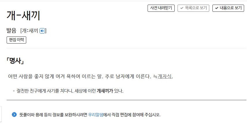 그렇다면 '새끼개?!'는 사전에 어떻게 나올까?