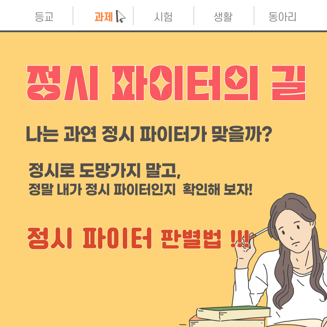 정시 파이터의 길을 선택했다면 매우 불안한 선택이 될 것입니다.