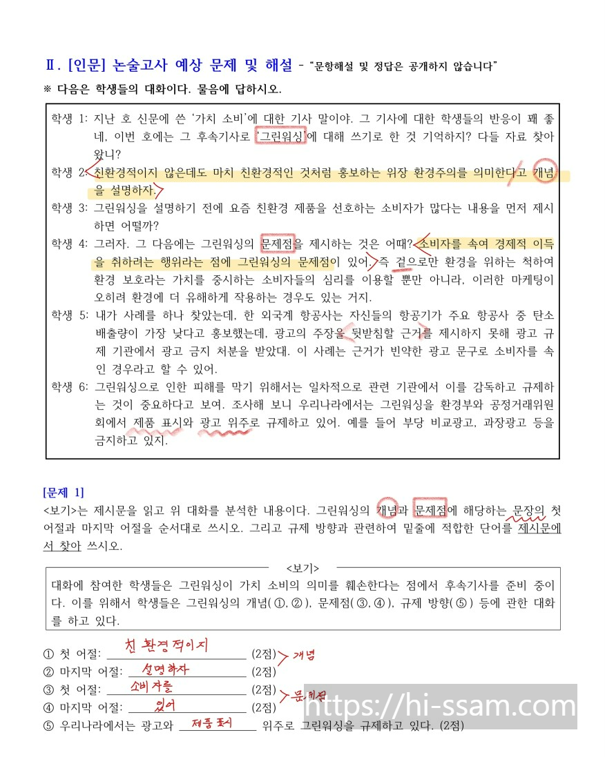 * 첫 시험이니만큼 대학 자체에서 "논술 고사 가이드"를 제시하고 있습니다.